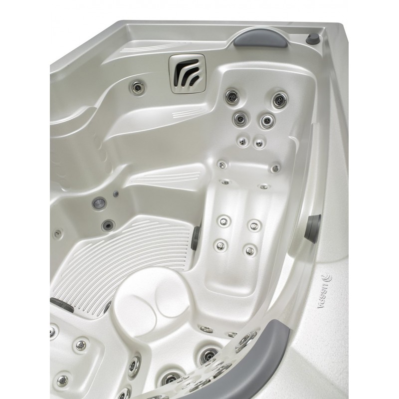 Доступ к бассейну осуществляется по ступенькам, на которых также можно удобно сидеть и лежать. Кроме того, они оснащены гидромассажными форсунками. Таким образом, настоящий плавательный спа-бассейн предлагает несколько вариантов базовой гидротерапии.